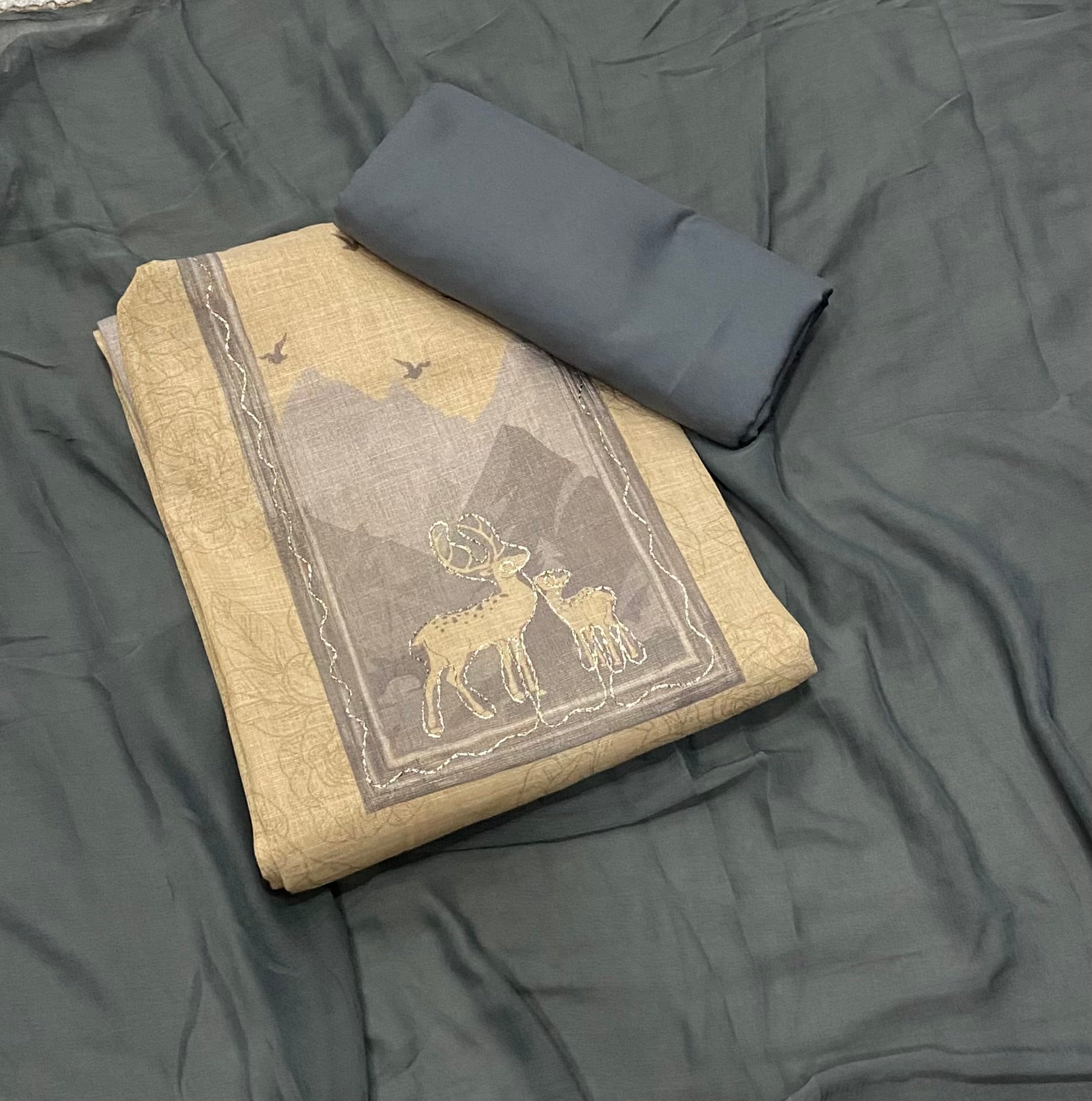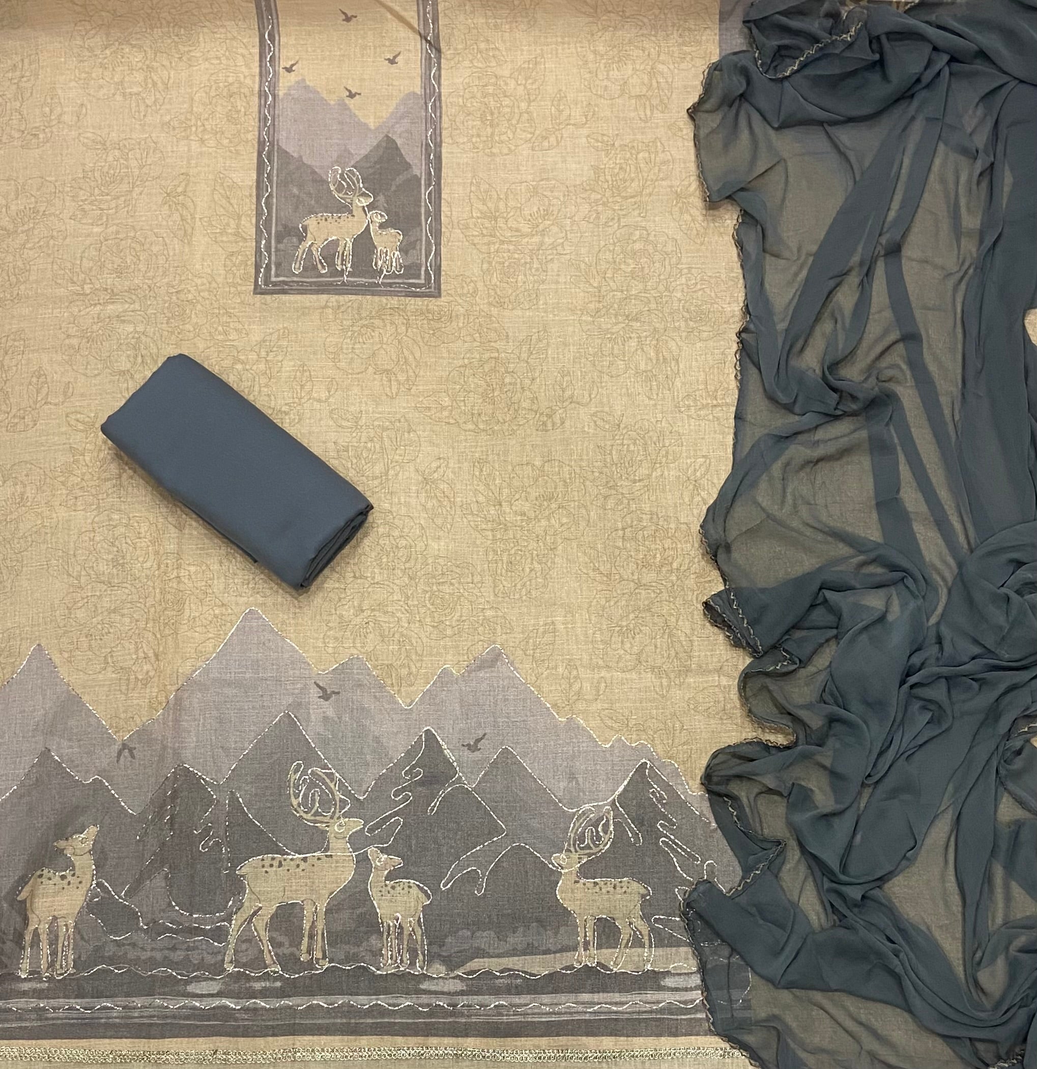 Classy Femora Linen Shimmer Silk Suit Set with Zari Work