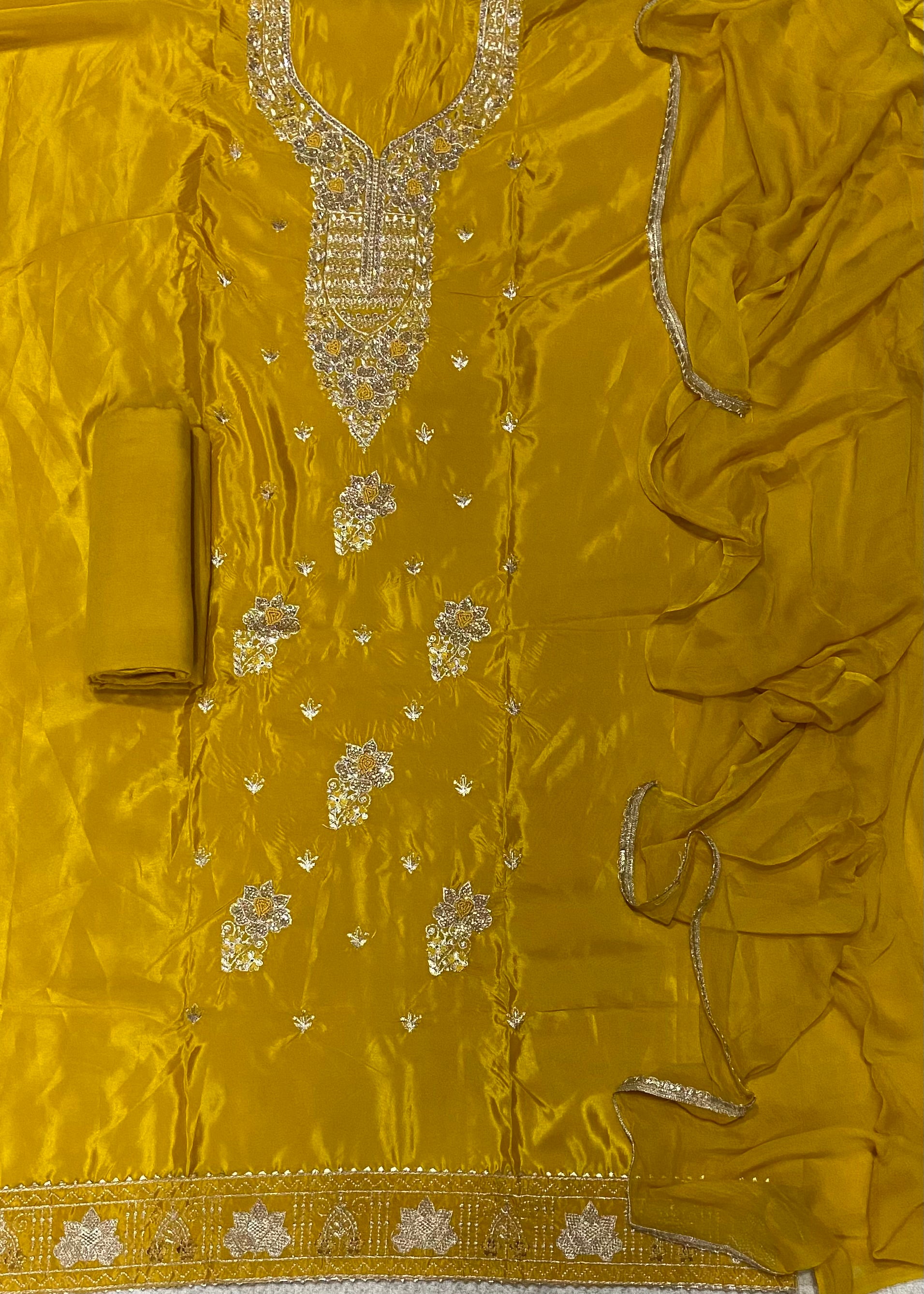 Classy Glass Organza Suit Set with Stone & Zari Thread Work
