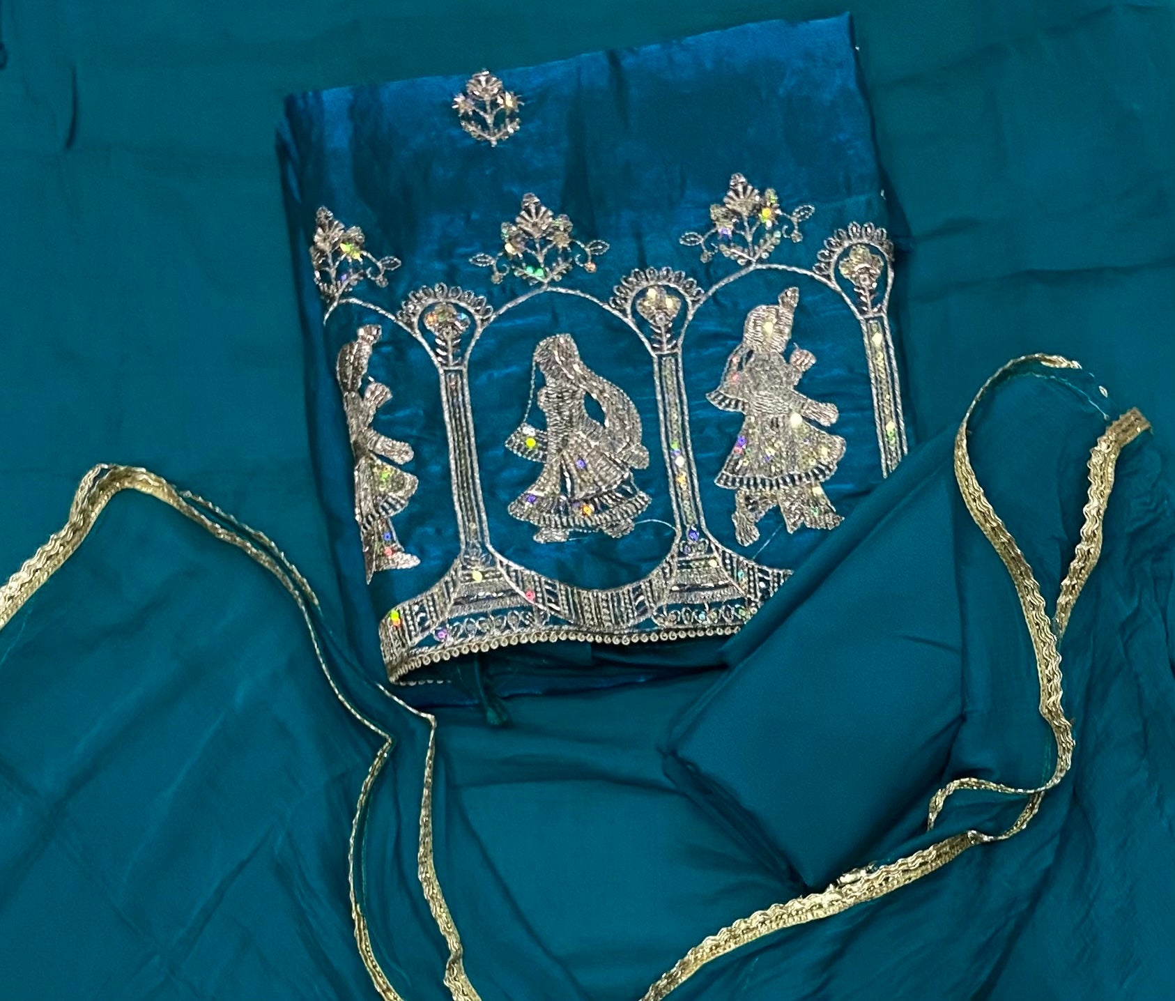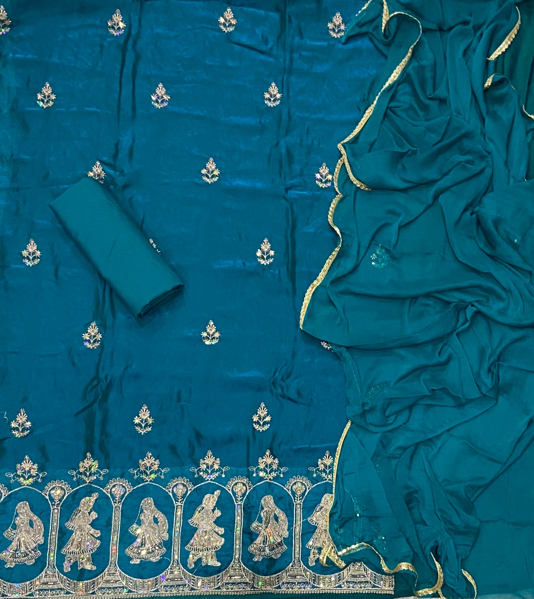 Crush Silk Suit Set with Zari, Cutdana & Sequins Work