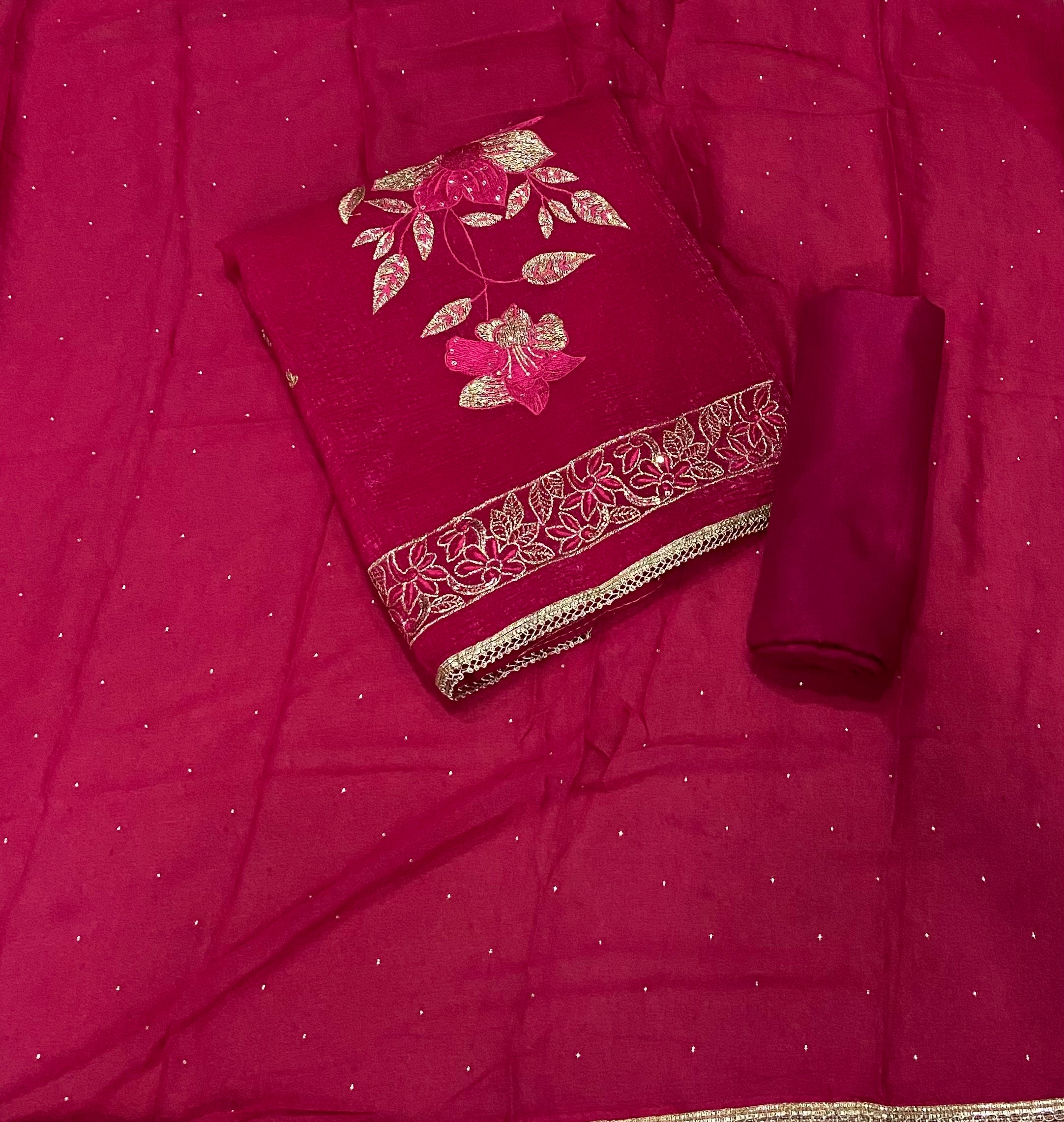 Fancy Crunchy Suit Set with Sequins Heavy Zari Thread Work