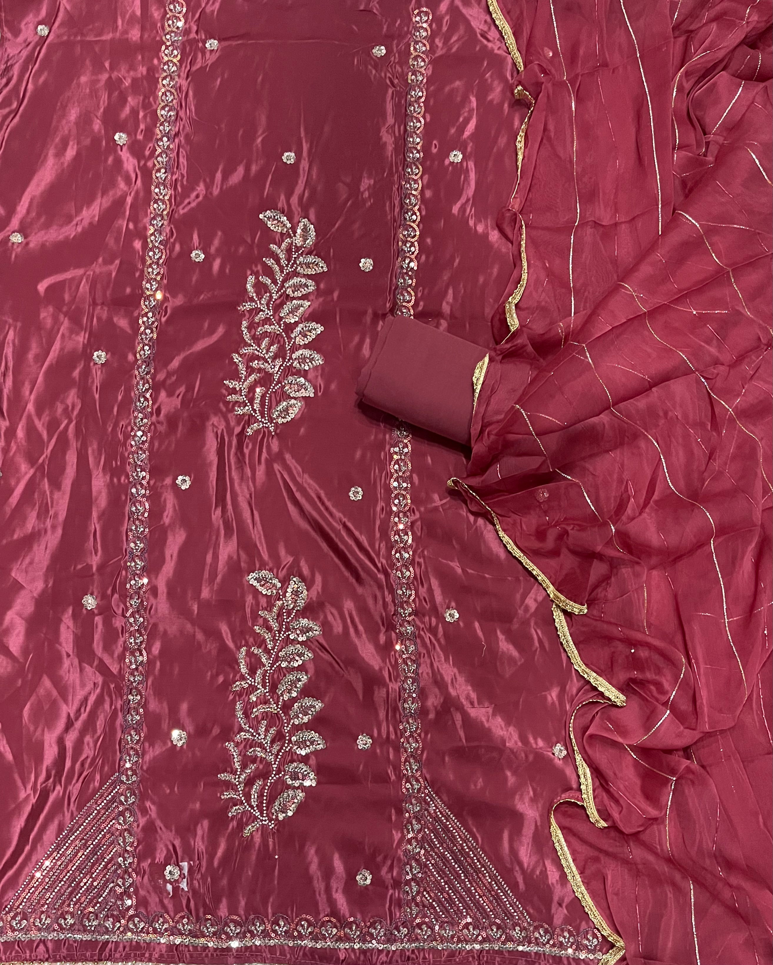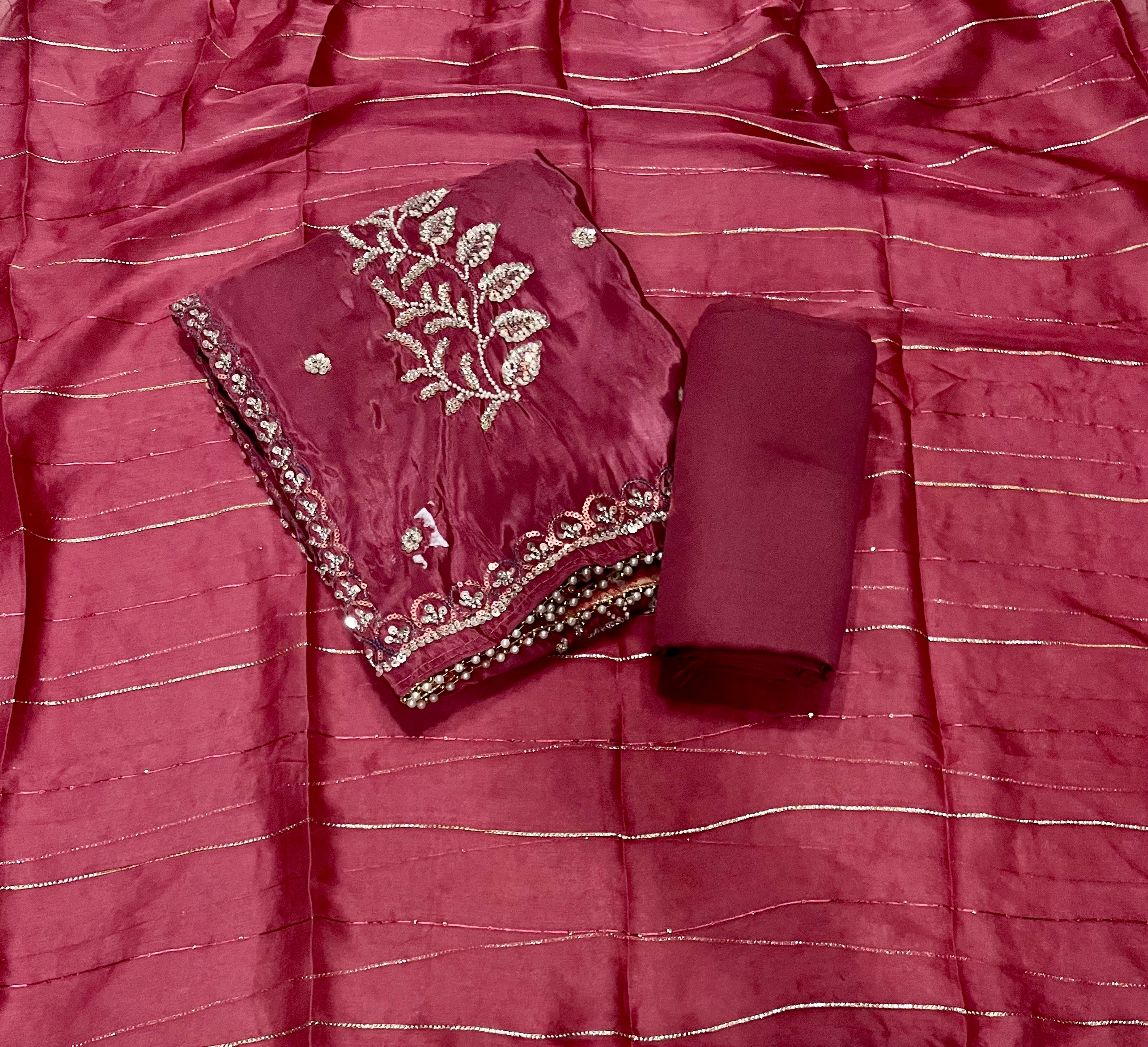 Fancy Glass Organza Suit Set with Heavy Pearl & Cutdana Work