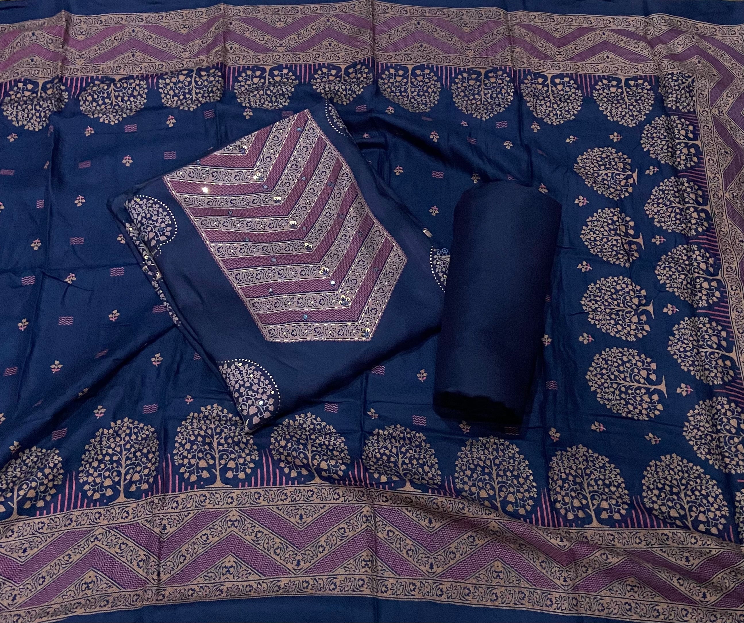Premium Winter Pashmina Digital Print Suit Set with mirror work