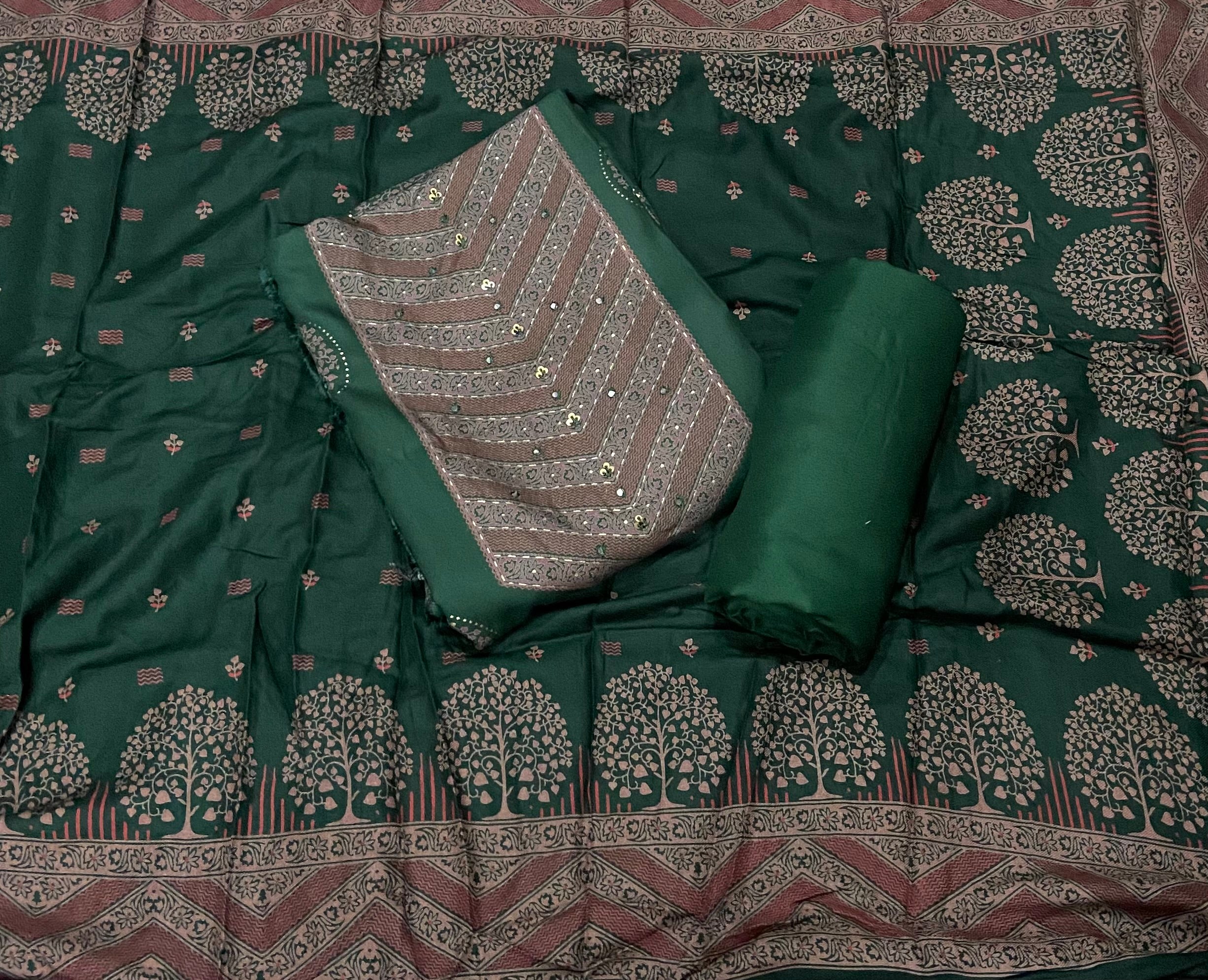 Premium Winter Pashmina Digital Print Suit Set with mirror work