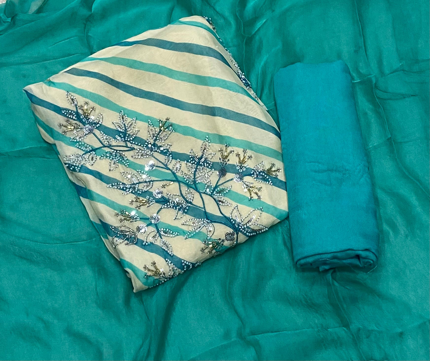 Pure Organza Suit Set with Cutdana & sequence Work