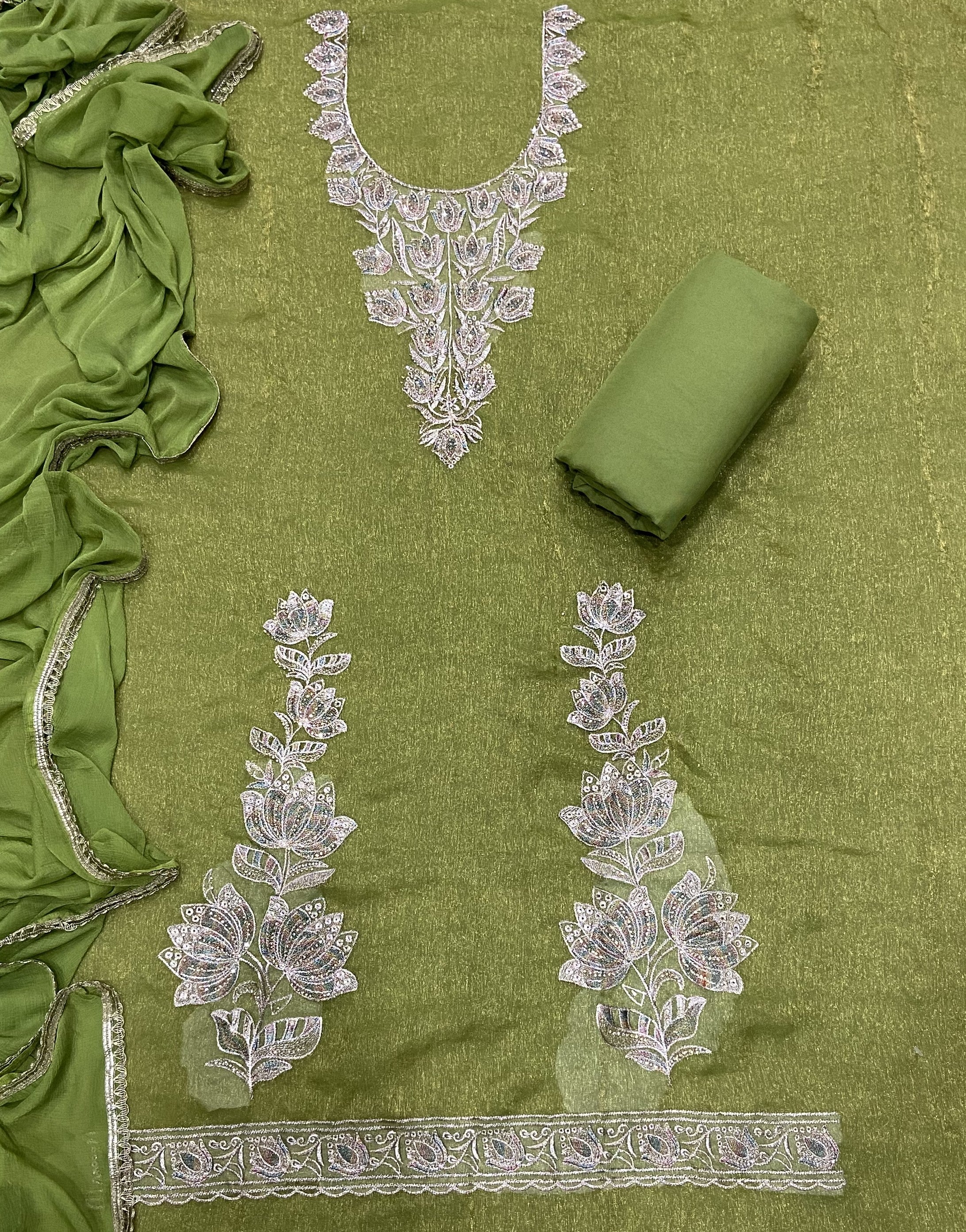 Pure Skylon Suit Set with Zari & sequence Work