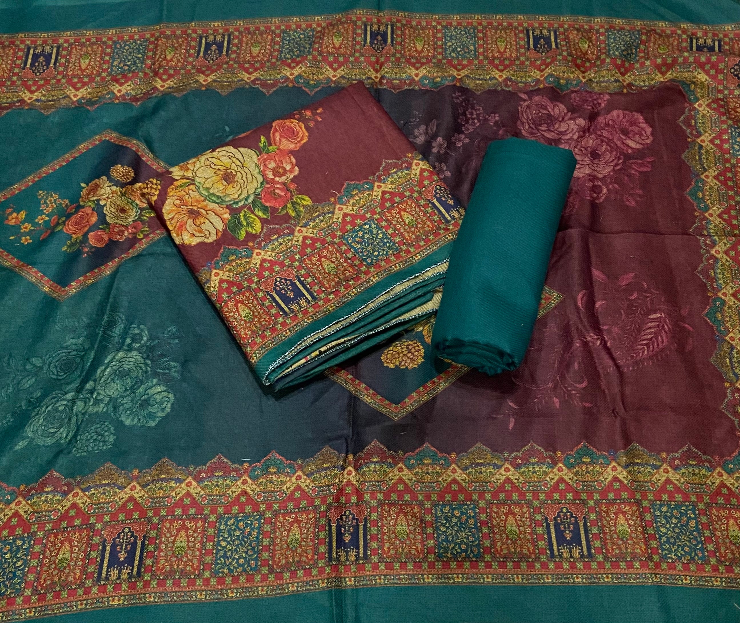 Stay warm and stylish this winter with our exclusive Winter Collection, offering a complete set of premium quality printed top, solid bottom & printed shawl perfect for the season. Crafted with care, these fabrics provide not just warmth but elegance, ensuring you look your best in every outfit.