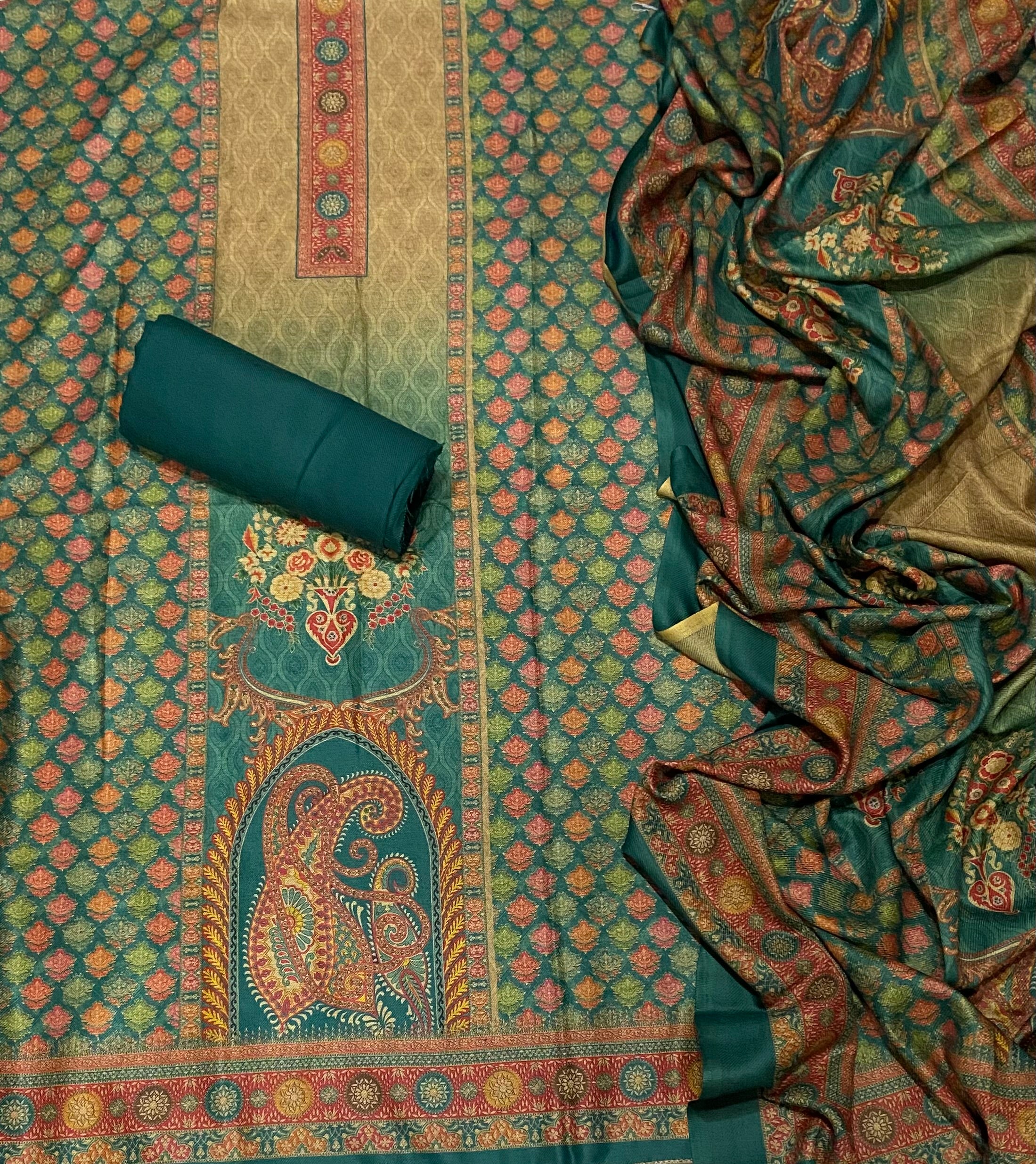 Stay warm and stylish this winter with our exclusive Winter Collection, offering a complete set of premium quality printed top, solid bottom & printed shawl perfect for the season. Crafted with care, these fabrics provide not just warmth but elegance, ensuring you look your best in every outfit.