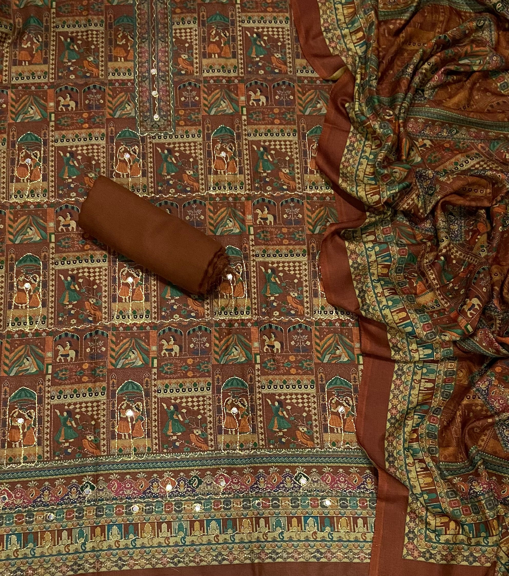 Stay warm and stylish this winter with our exclusive Winter Collection, offering a complete set of premium quality printed top, solid bottom & printed shawl perfect for the season. Crafted with care, these fabrics provide not just warmth but elegance, ensuring you look your best in every outfit.