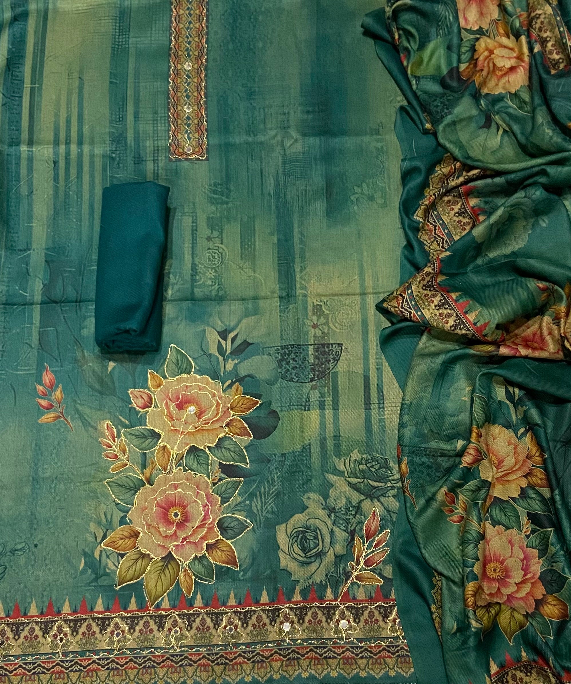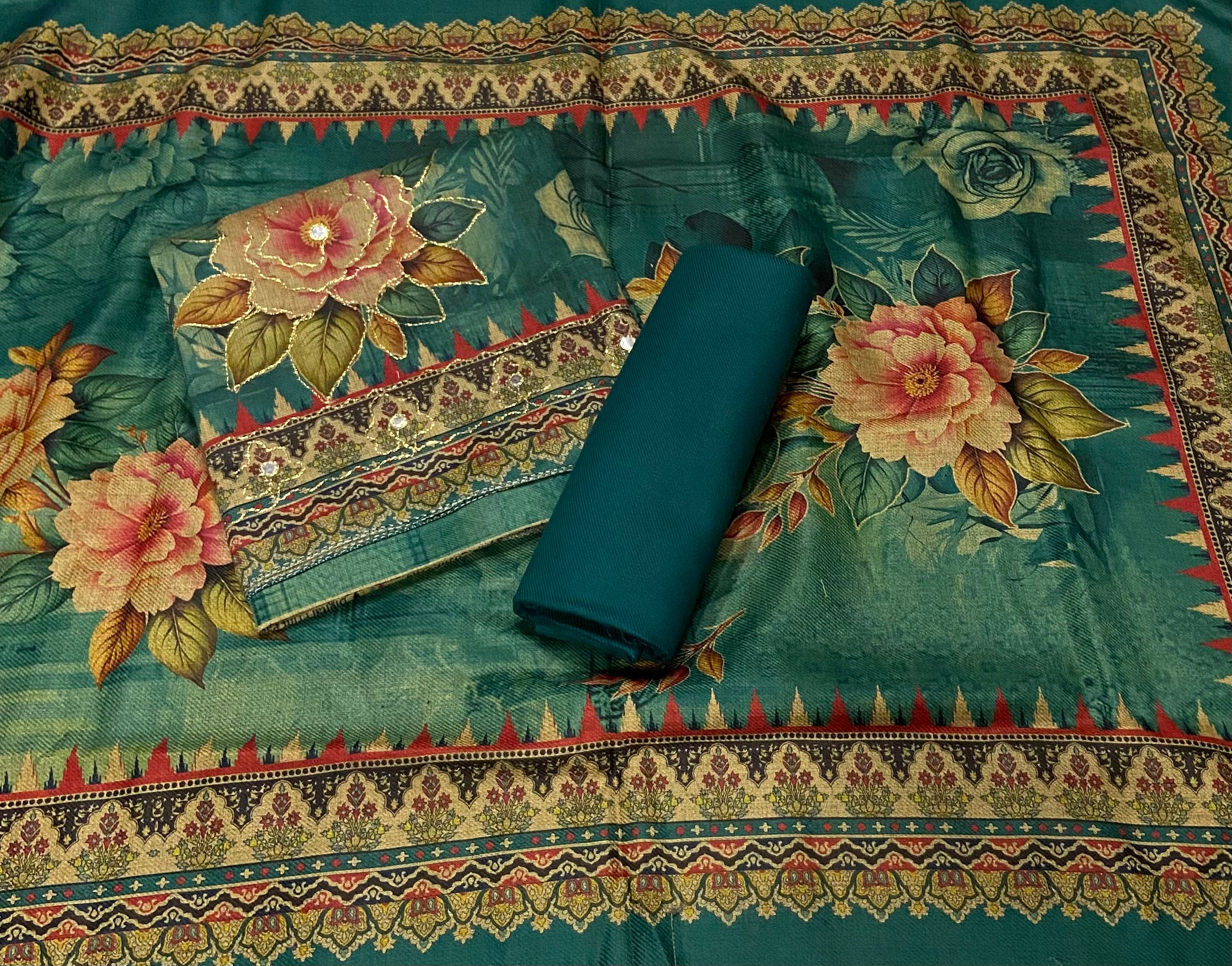 Stay warm and stylish this winter with our exclusive Winter Collection, offering a complete set of premium quality printed top, solid bottom & printed shawl perfect for the season. Crafted with care, these fabrics provide not just warmth but elegance, ensuring you look your best in every outfit.